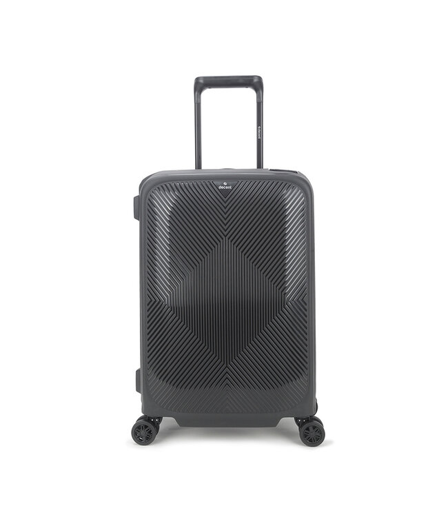 De Decent Axiss-Fix Zwart handbagage koffer heeft een inhoud van 43 liter, een formaat van 55×37×23 cm en weegt leeg slechts 2.6 kg. De koffer past onder andere in het handbagage-rek bij Ryanair (max. 55×40×20 cm), Brussels Airlines en Lufthansa (max. 55×35×25 cm)*.