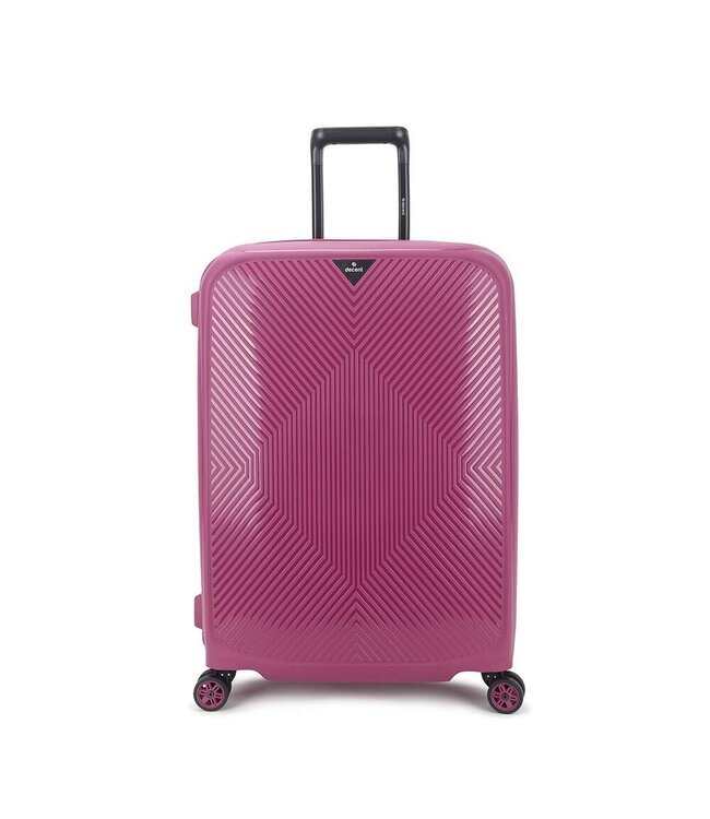 De Decent Axiss-Fix Lavendel grote koffer is een harde koffer van polypropylene, 68×47×29 cm. 80 liter — genoeg voor 2 weken of langer, zonder te kiezen wat er thuis blijft. Leeggewicht: 3.7 kg.