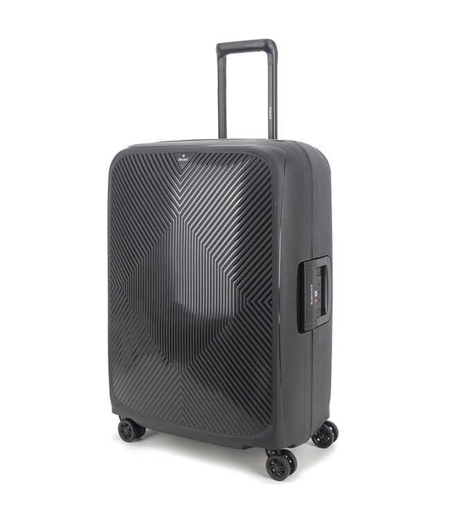 De Decent Axiss-Fix Zwart grote koffer is een harde koffer van polypropylene, 68×47×29 cm. 80 liter — genoeg voor 2 weken of langer, zonder te kiezen wat er thuis blijft. Leeggewicht: 3.7 kg.