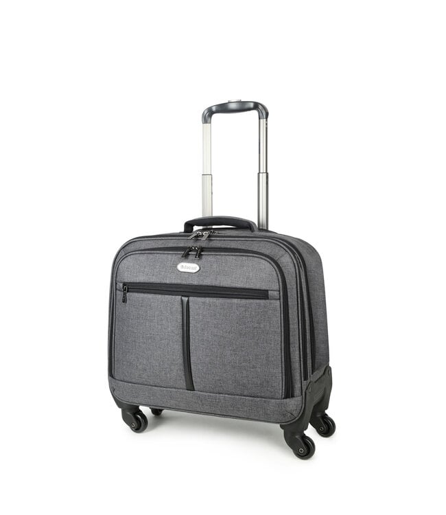 De trolley heeft twee wielen en een uittrekbare trekstang. Met een apart laptopvak en meerdere vakken voor een overzichtelijke vakindeling.