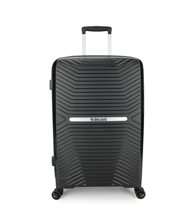 De Decent Cross-One Zwart grote koffer is een harde koffer van polycarbonaat, 76×47×28 cm. 94 liter — genoeg voor 2 weken of langer, zonder te kiezen wat er thuis blijft. Leeggewicht: 3.9 kg.