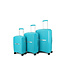 De Decent Cross-One Blauw kofferset bestaat uit 3 koffers van harde polycarbonaat. Dezelfde afwerking, dezelfde kleur, één prijs. De koffers schuiven in elkaar voor compacte opslag thuis.