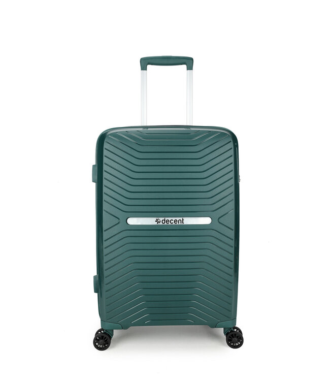 De Decent Cross-One Groen medium koffer is een harde koffer van polycarbonaat, 66×41×25 cm. 63 liter — goed voor een week of twee op vakantie. Leeggewicht: 3.3 kg.