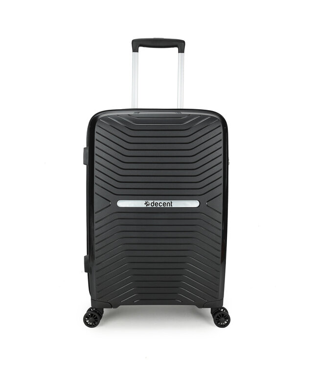 De Decent Cross-One Zwart medium koffer is een harde koffer van polycarbonaat, 66×41×25 cm. 63 liter — goed voor een week of twee op vakantie. Leeggewicht: 3.3 kg.