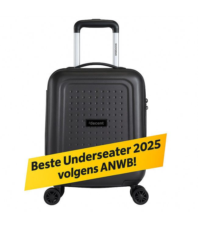 De Decent Antraciet handbagage koffer heeft een inhoud van 24 liter, een formaat van 42×32×20 cm en weegt leeg slechts 2.3 kg. De koffer past in het handbagage-rek bij de meeste Europese maatschappijen en past ook onder de stoel voor je*.