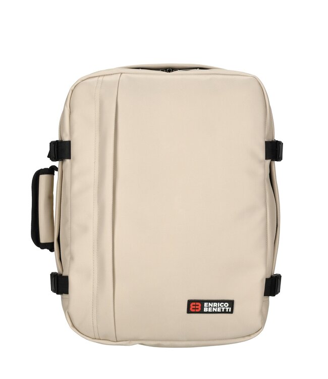 De Enrico Benetti Innsbruck Zand rugzak is een waterafstotende nylon rugzak van 18 liter, 40×30×20 cm. Leeggewicht: 0.7 kg. Ontworpen als underseat handbagage bij Klm en andere maatschappijen*.