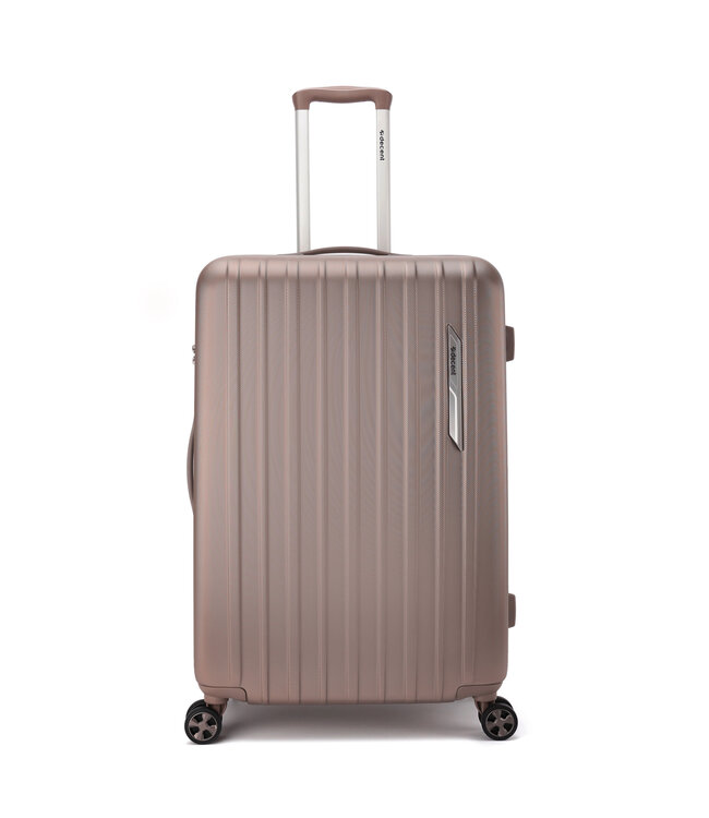 De Decent Paradiso Champagne grote koffer is een harde koffer van ABS, 76×45×30 cm. 95 liter — genoeg voor 2 weken of langer, zonder te kiezen wat er thuis blijft. Leeggewicht: 4.5 kg.