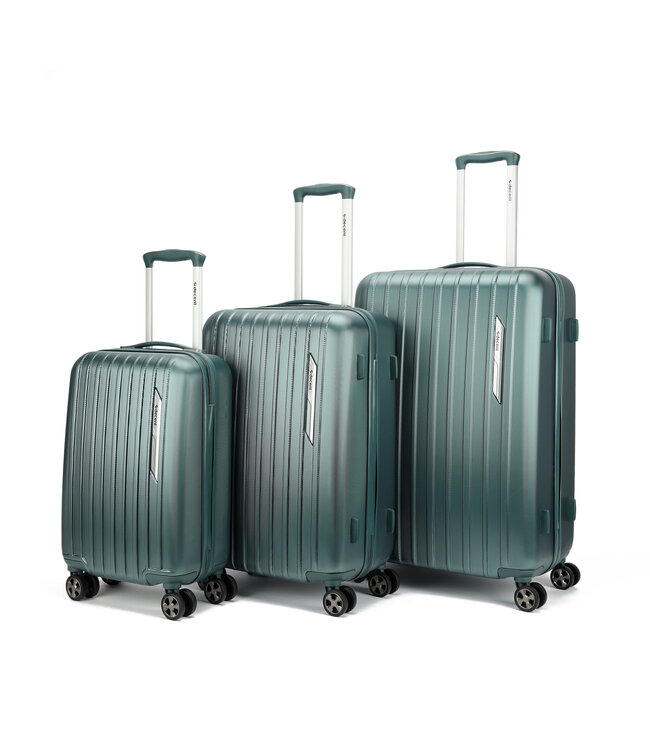 De Decent Paradiso Groen kofferset bestaat uit 3 koffers van harde ABS. Dezelfde afwerking, dezelfde kleur, één prijs. De koffers schuiven in elkaar voor compacte opslag thuis.