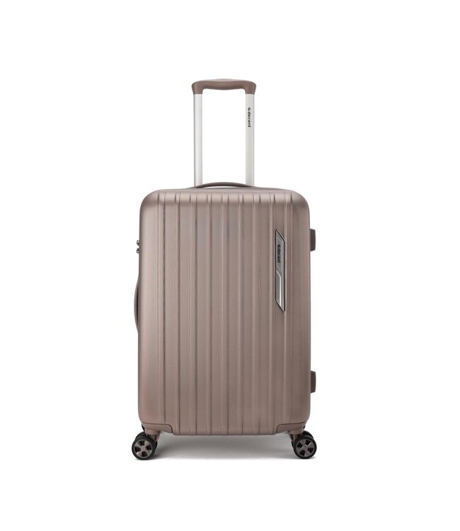 De Decent Paradiso Champagne medium koffer is een harde koffer van ABS, 66×42×25 cm. 60 liter — goed voor een week of twee op vakantie. Leeggewicht: 3.5 kg.