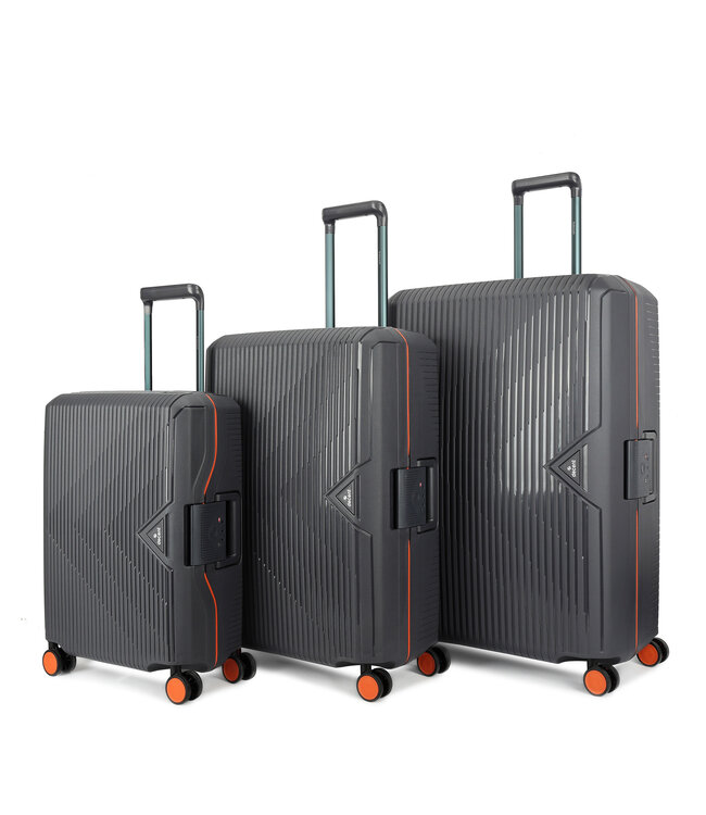 De Decent Antraciet kofferset bestaat uit 3 koffers van harde ABS. Dezelfde afwerking, dezelfde kleur, één prijs. De koffers schuiven in elkaar voor compacte opslag thuis.