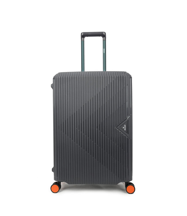 De Decent Antraciet medium koffer is een harde koffer van ABS, 67×46×27 cm. 73 liter — goed voor een week of twee op vakantie. Leeggewicht: 3.6 kg.
