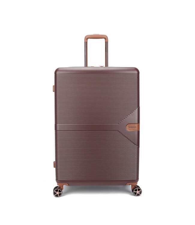 De Decent Stella grote koffer is een harde koffer van polycarbonaat, 77×50×31 cm. Leeggewicht: 4.4 kg.
