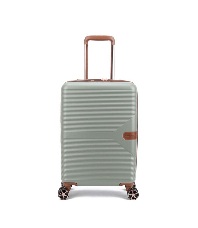 De Decent Stella Groen handbagage koffer heeft een inhoud van 37 liter, een formaat van 55×35×20 cm en weegt leeg slechts 2.9 kg. De koffer past onder andere in het handbagage-rek bij Ryanair (max. 55×40×20 cm), Brussels Airlines en Lufthansa (max. 55×35×25 cm)*.