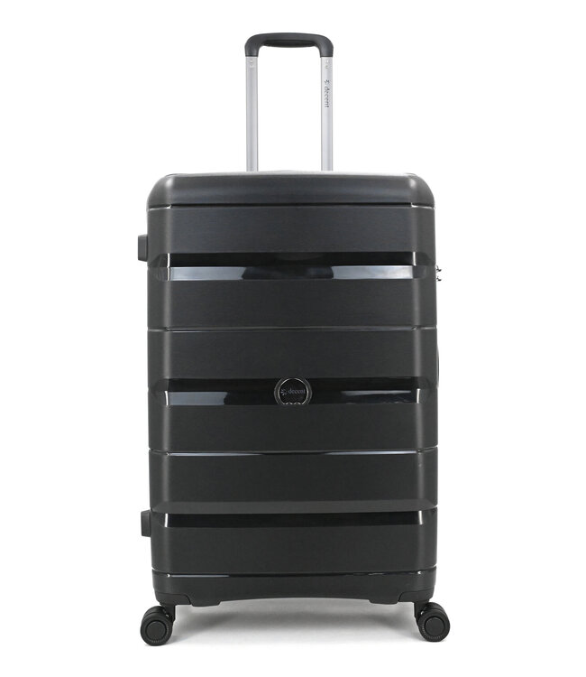 De Decent Straight-Line Zwart grote koffer is een harde koffer van polycarbonaat, 77×50×31 cm. 94 liter — genoeg voor 2 weken of langer, zonder te kiezen wat er thuis blijft. Leeggewicht: 4.
